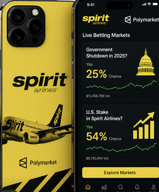 The prediction markets are split, with 54% of those trading believing the U.S. will take a stake in Spirit Airlines by May 31.